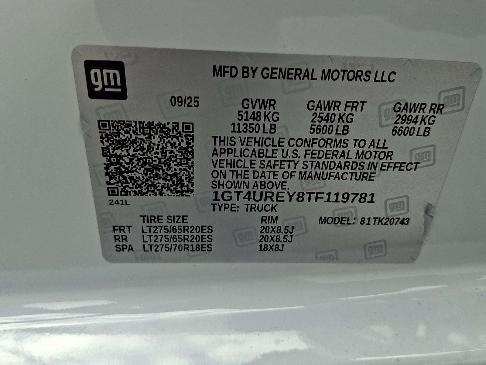 - 18" LT275/70R18 all-terrain, blackwall spare tire